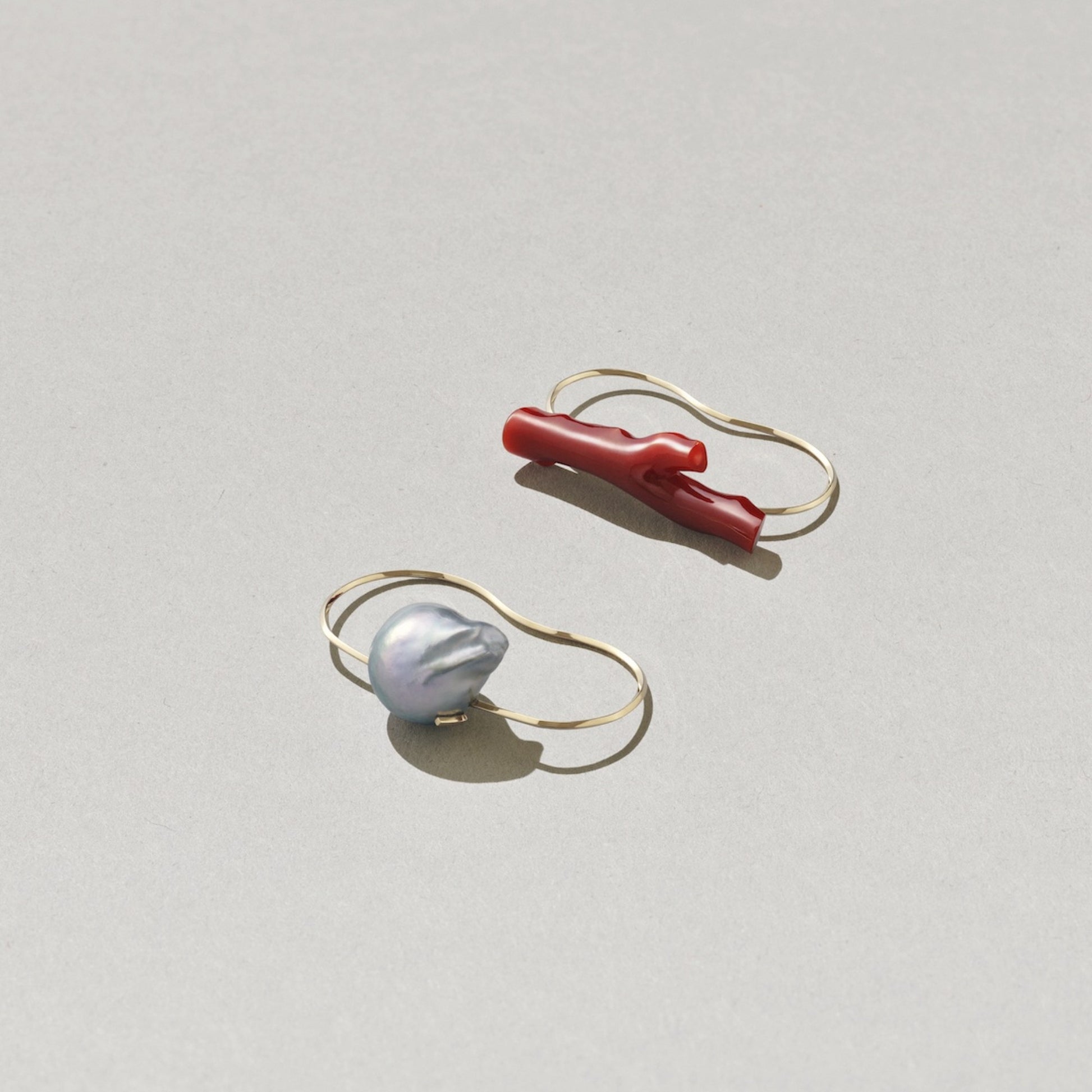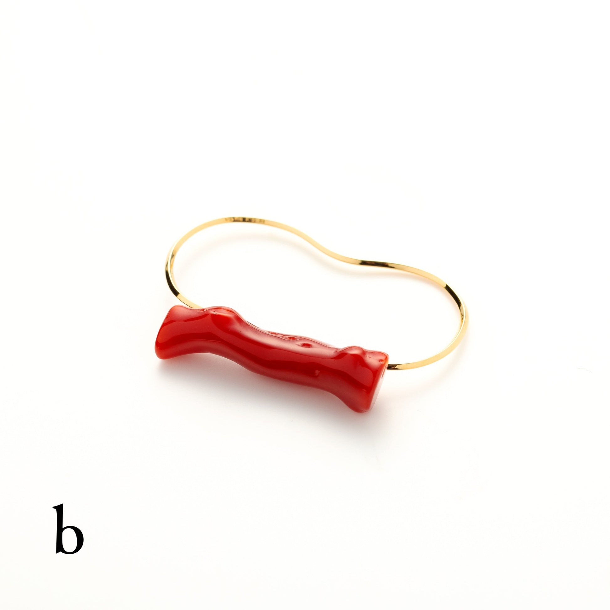 赤珊瑚のユニークな枝ぶりが引き立つシンプルなデザインです。指に沿った曲線のアームが、赤珊瑚を優しく引き寄せます。