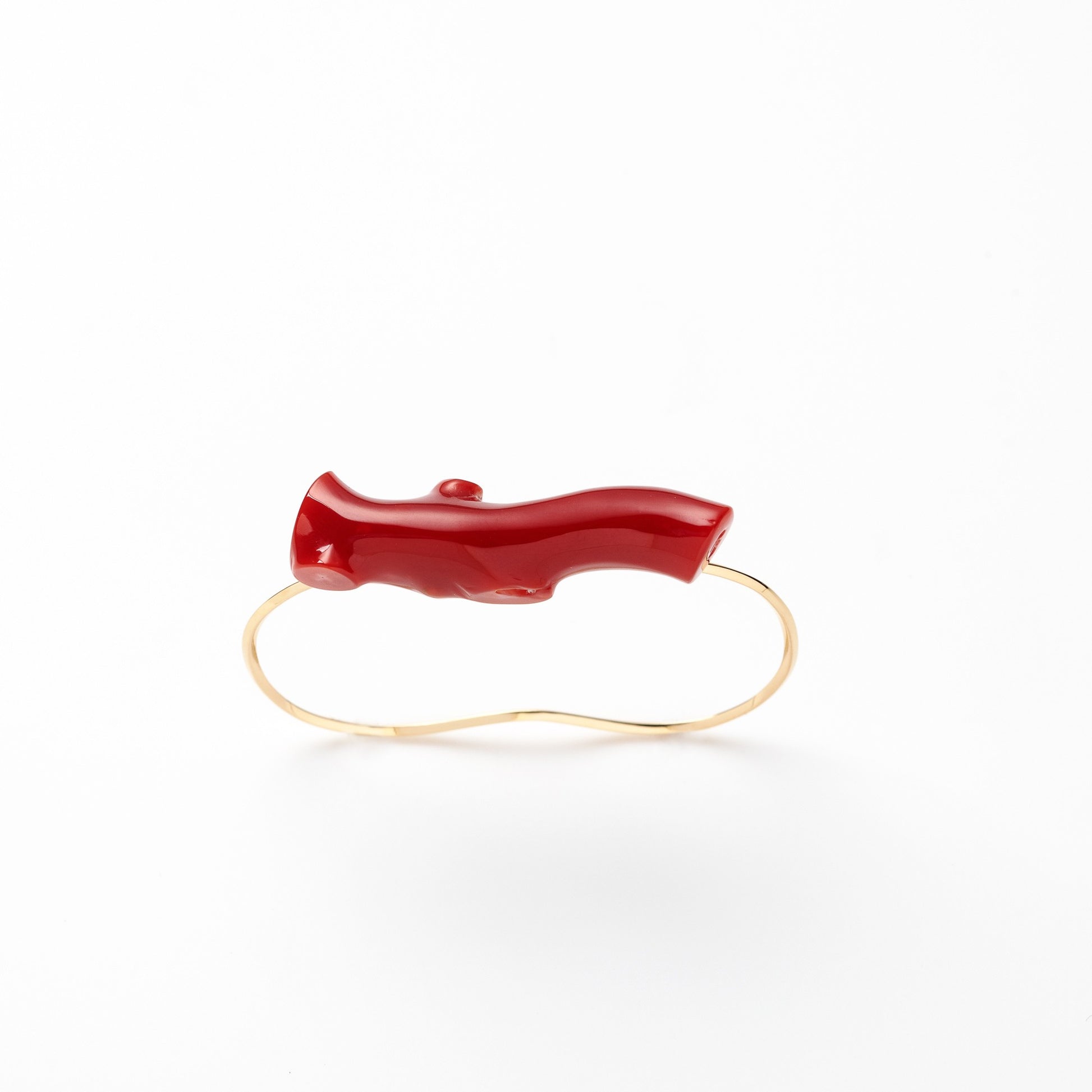 “a bean” 赤珊瑚のダブルフィンガーリング