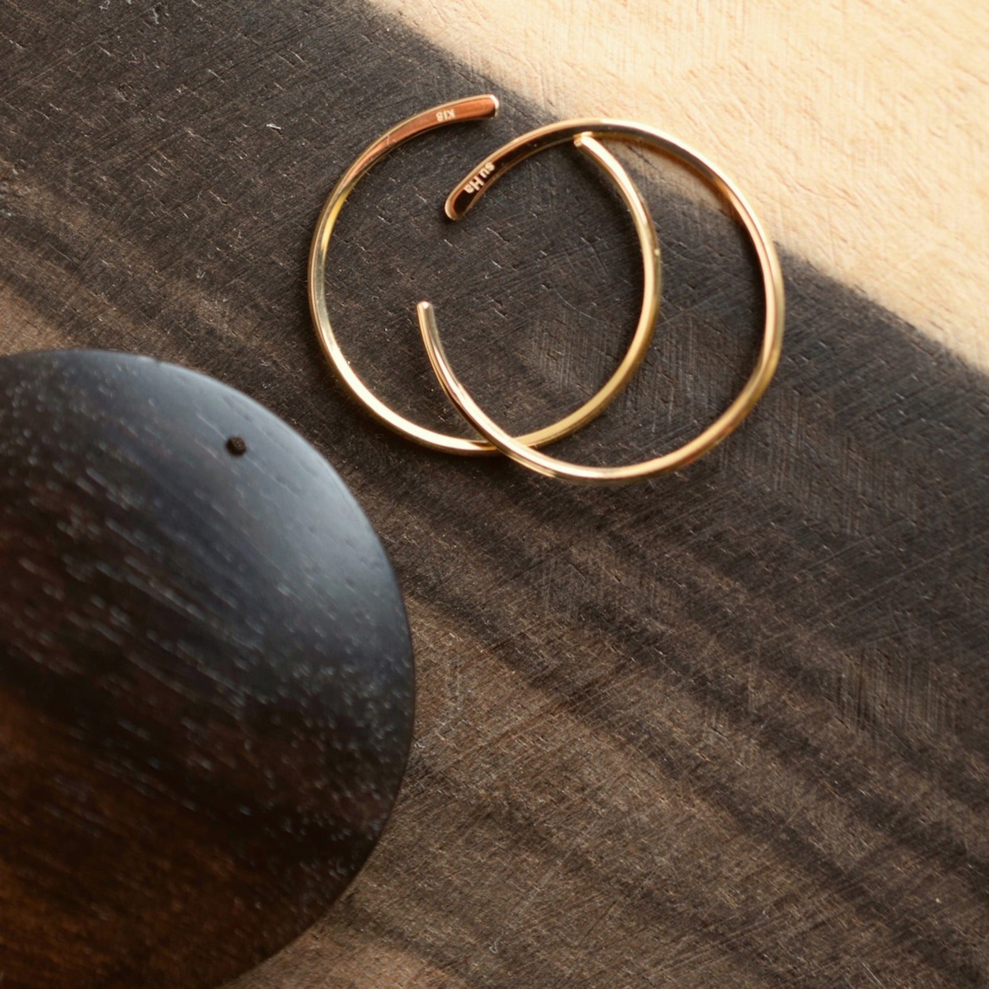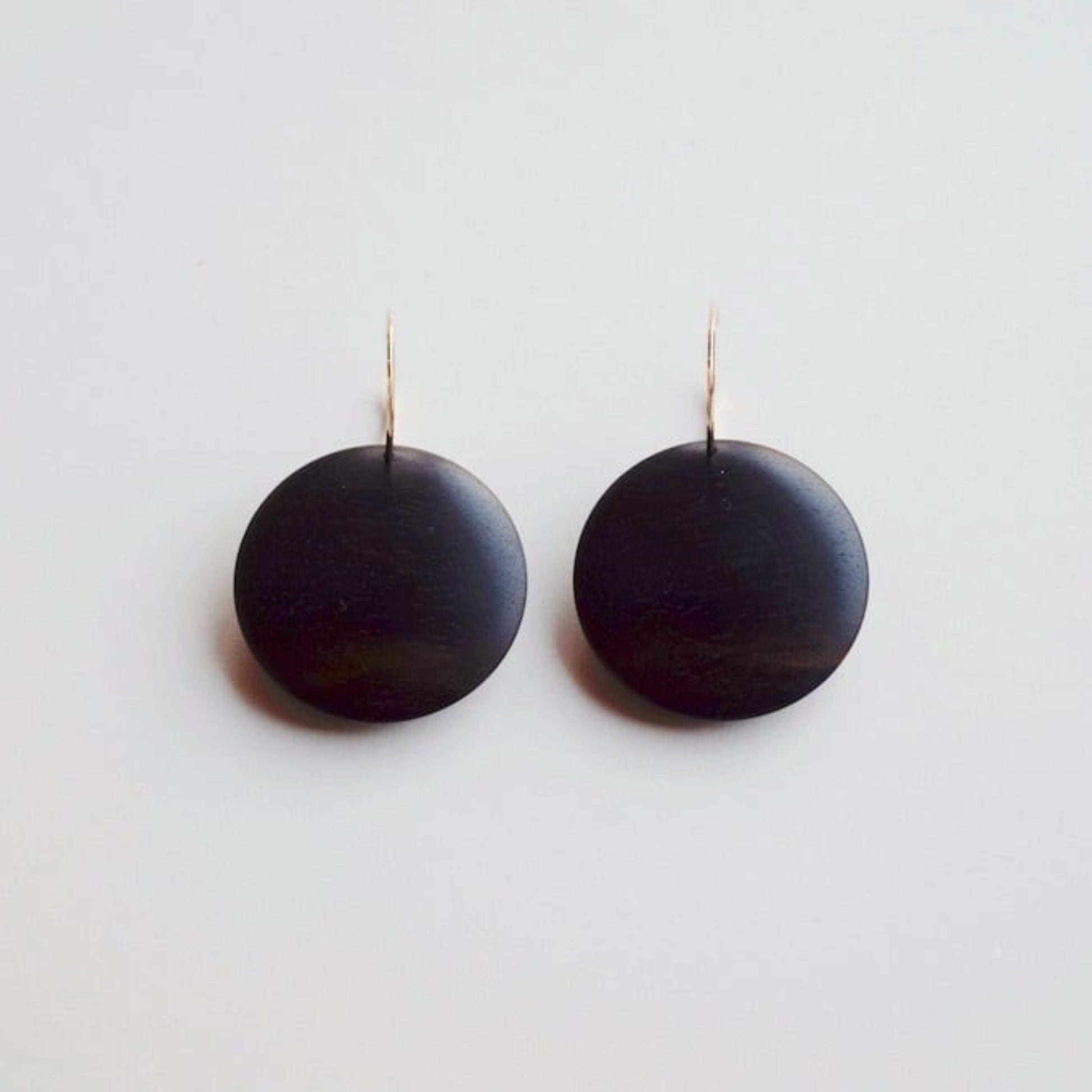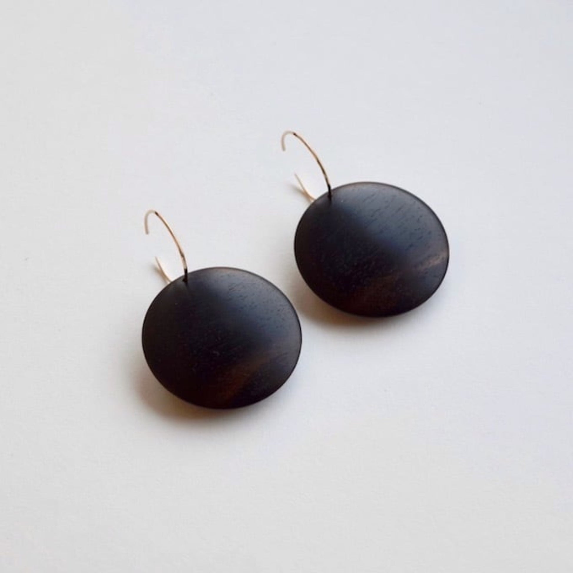 黒柿のシンプルなフープピアス。厚みを感じさせないひらりとした形は、薄く挽いた縁から中心に向かってなだらかに膨らみを持たせています。