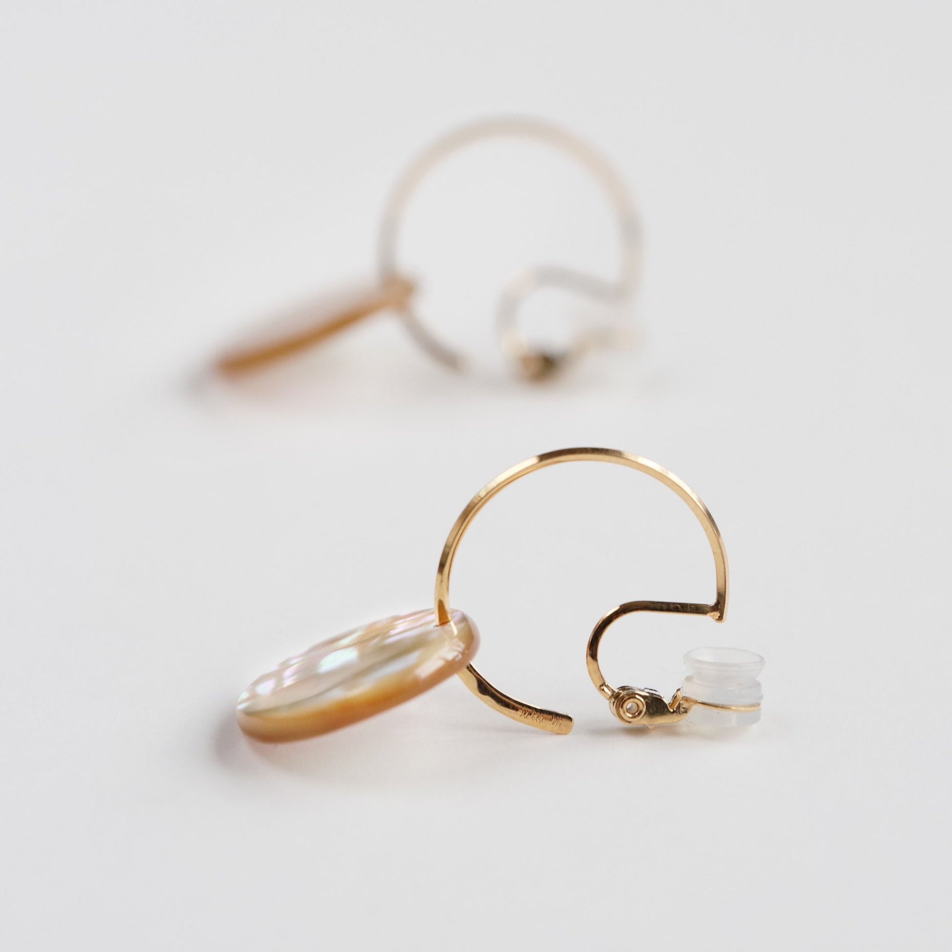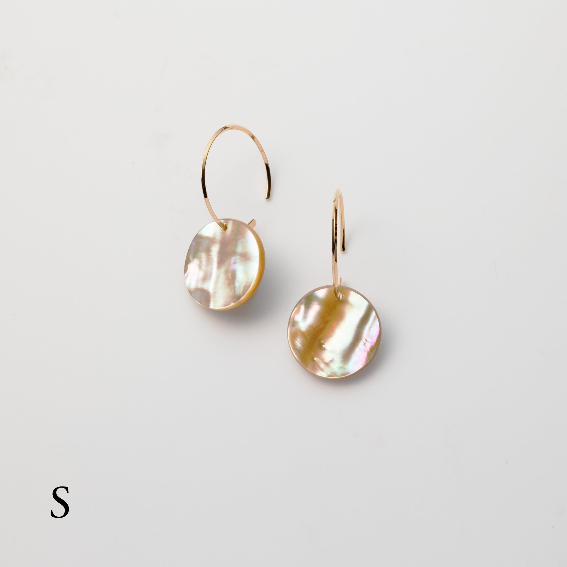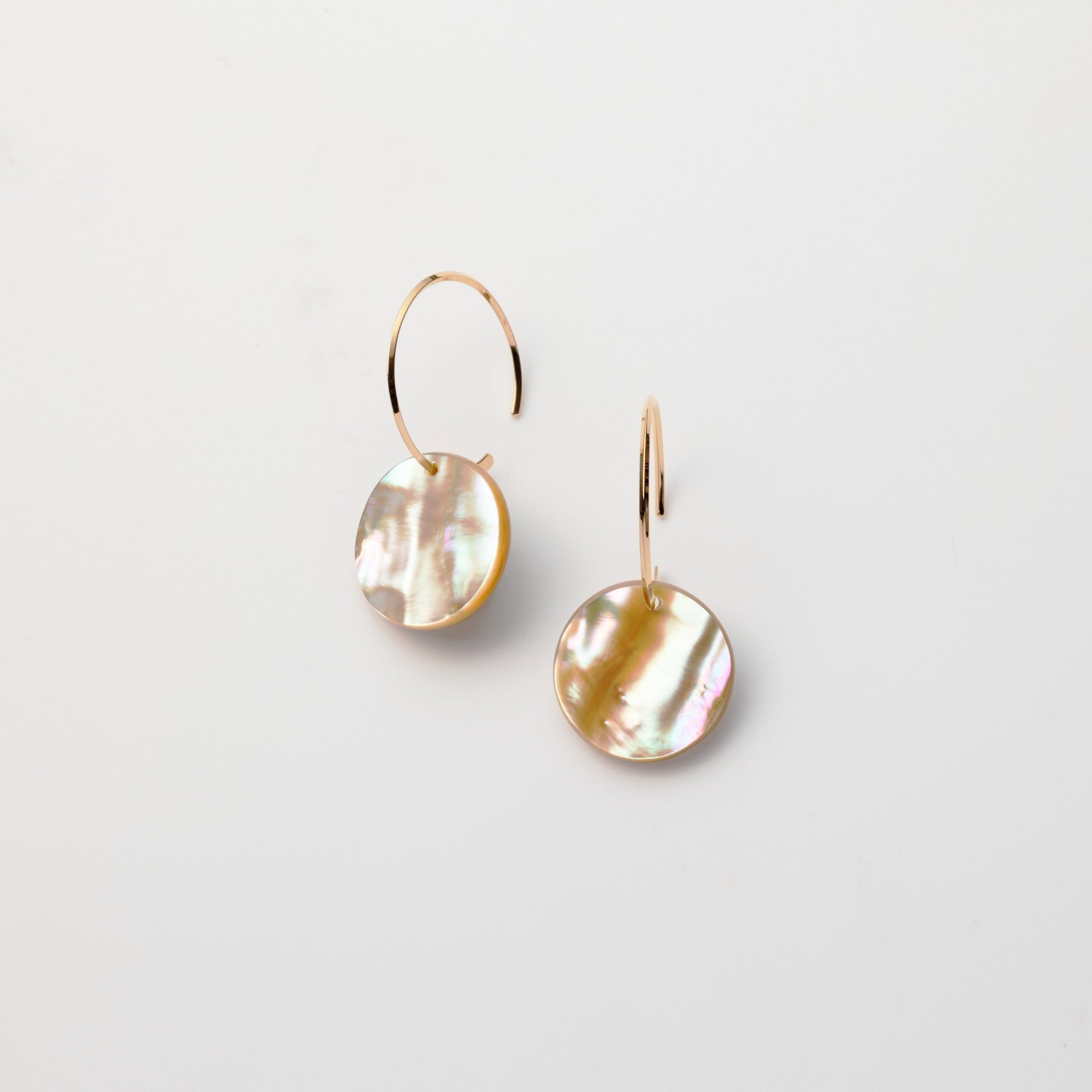 天然あわびの貝殻を磨きだしたフープイヤリング/ピアス。貝殻に宿る色の重なりとゆらぎの表情を、シンプルな輪郭におさめました。揺れるたびに艶めくイヤリングです。