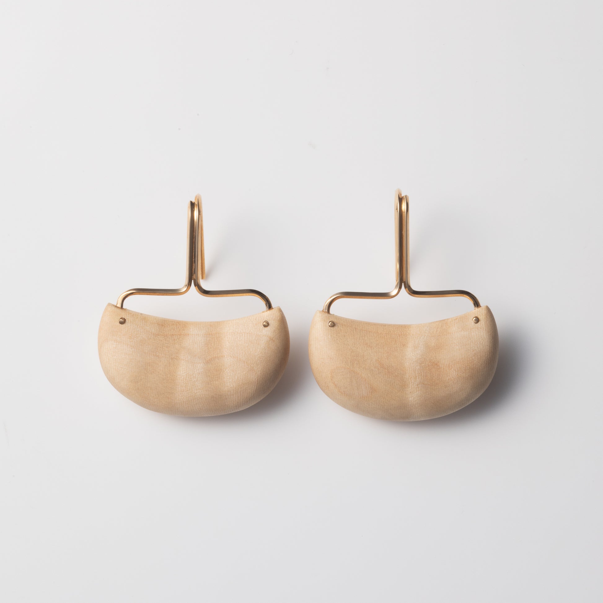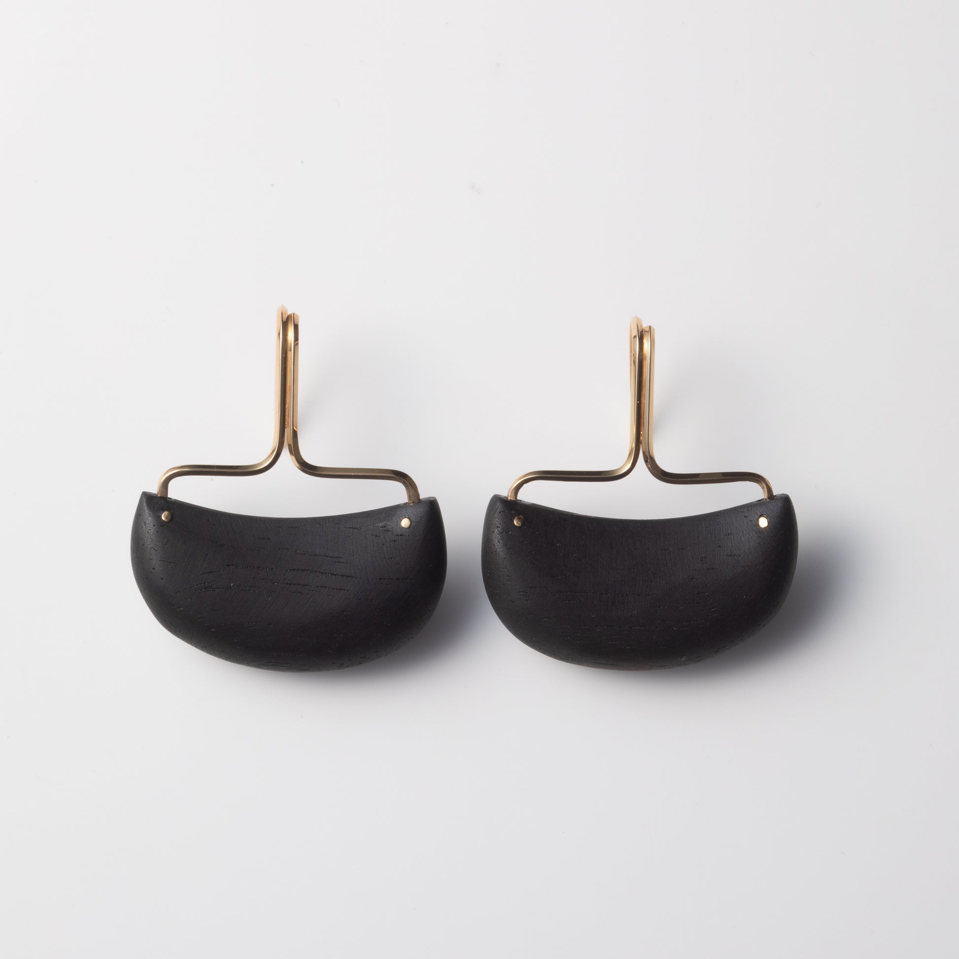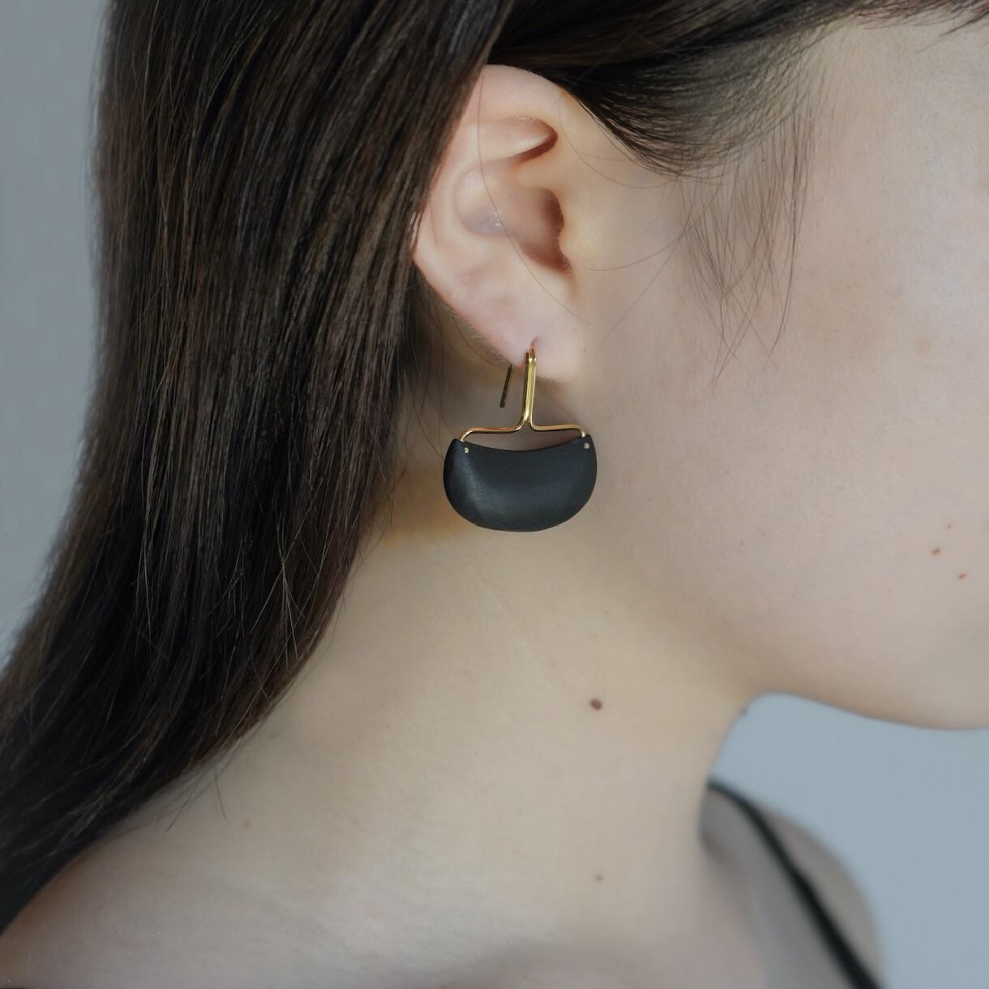 天然木から削りだしたフックピアス。樹木ならではの温かみを感じる色艶です。