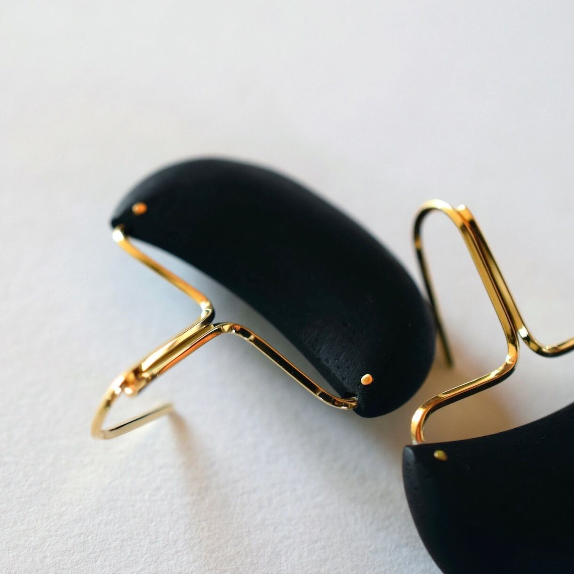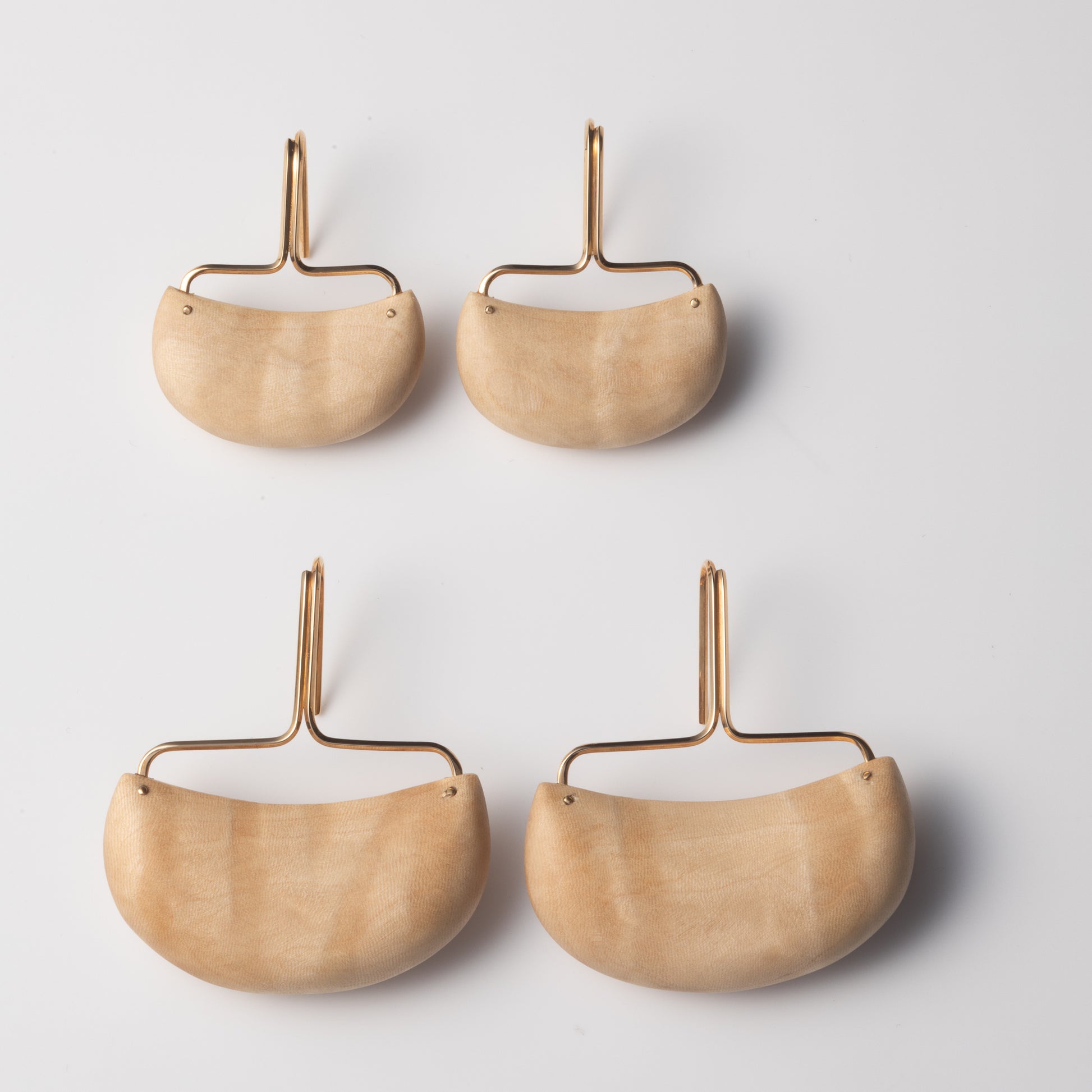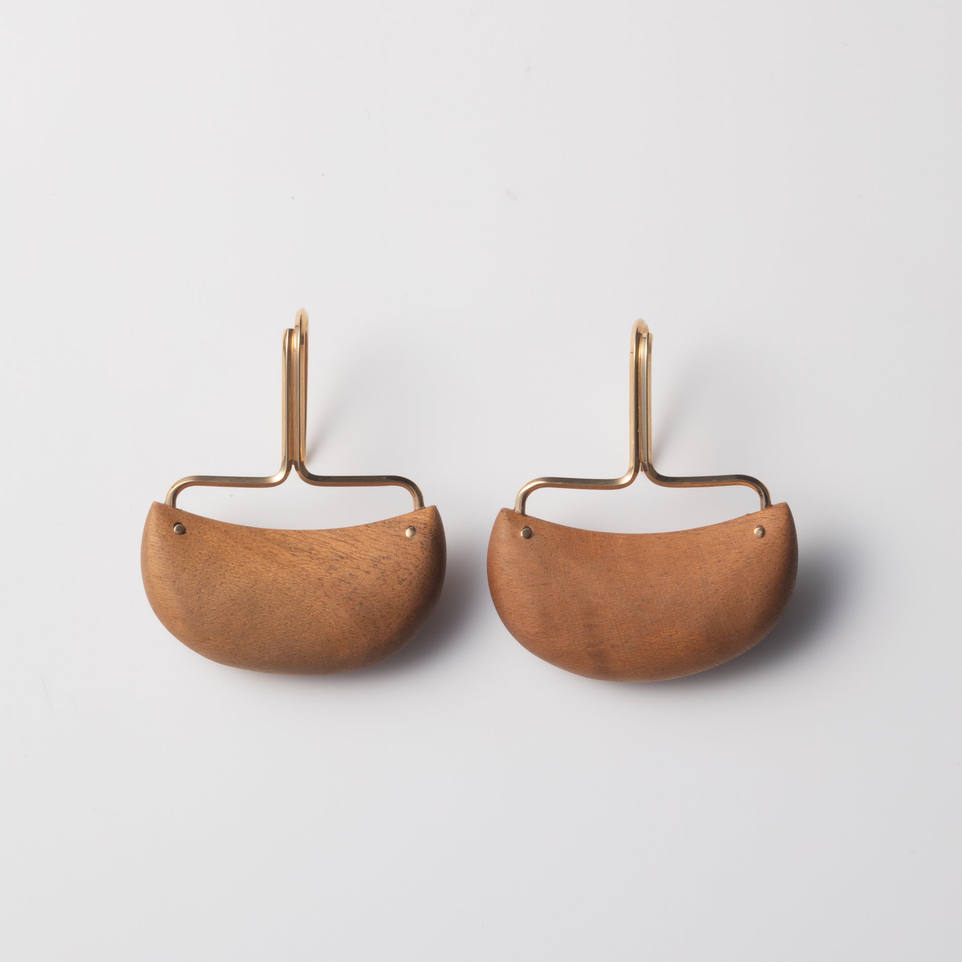 天然木から削りだしたフックピアス。樹木ならではの温かみを感じる色艶です。