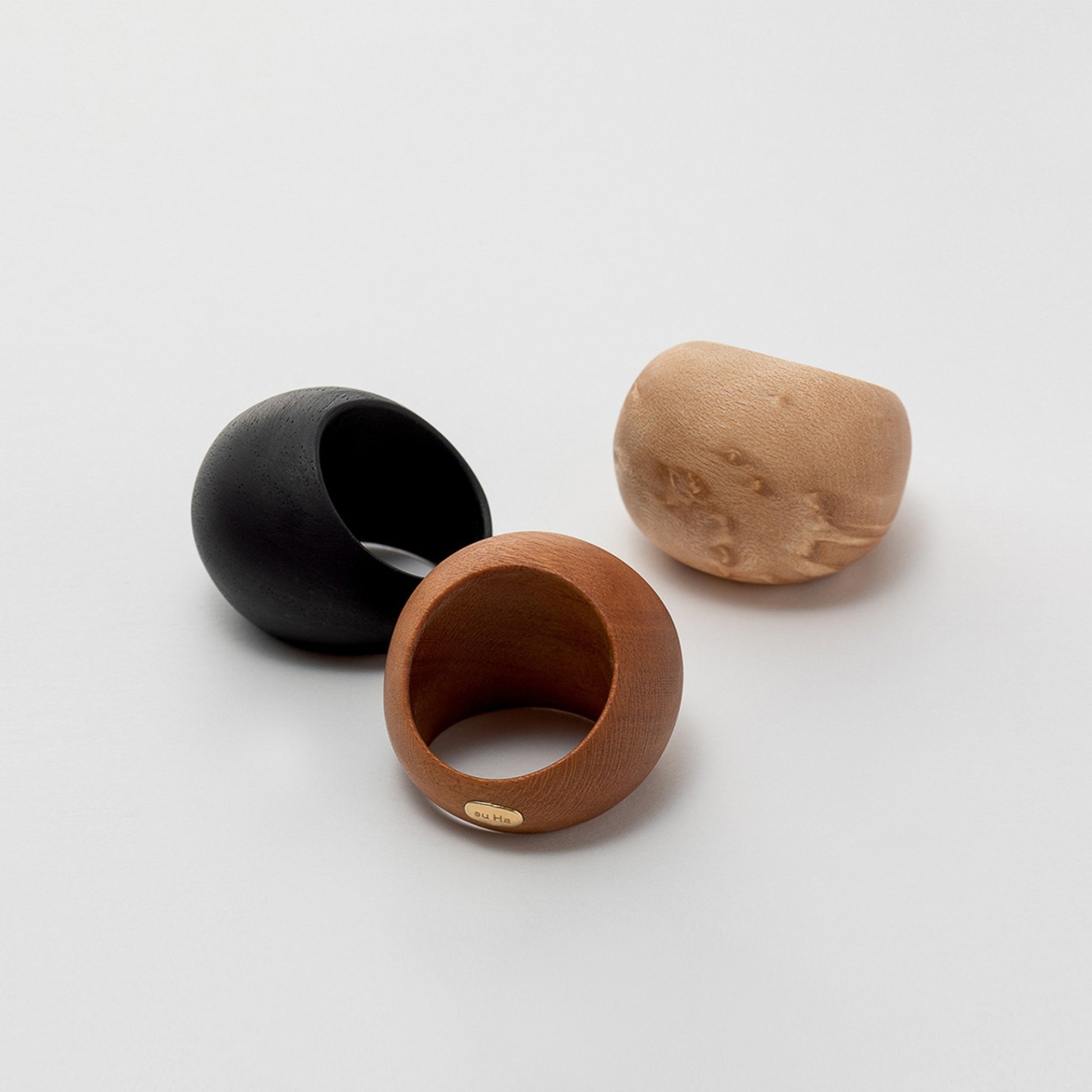 天然木の息づかいを感じるシンプルなウッドリング。時を重ねるうちに色艶が深まり愛着が増していきます。